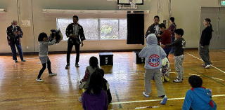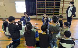 鎮西小学校と 大任小学校・今任小学校(合同)にて獅子楽の学習をしました (2025.12.31追加)